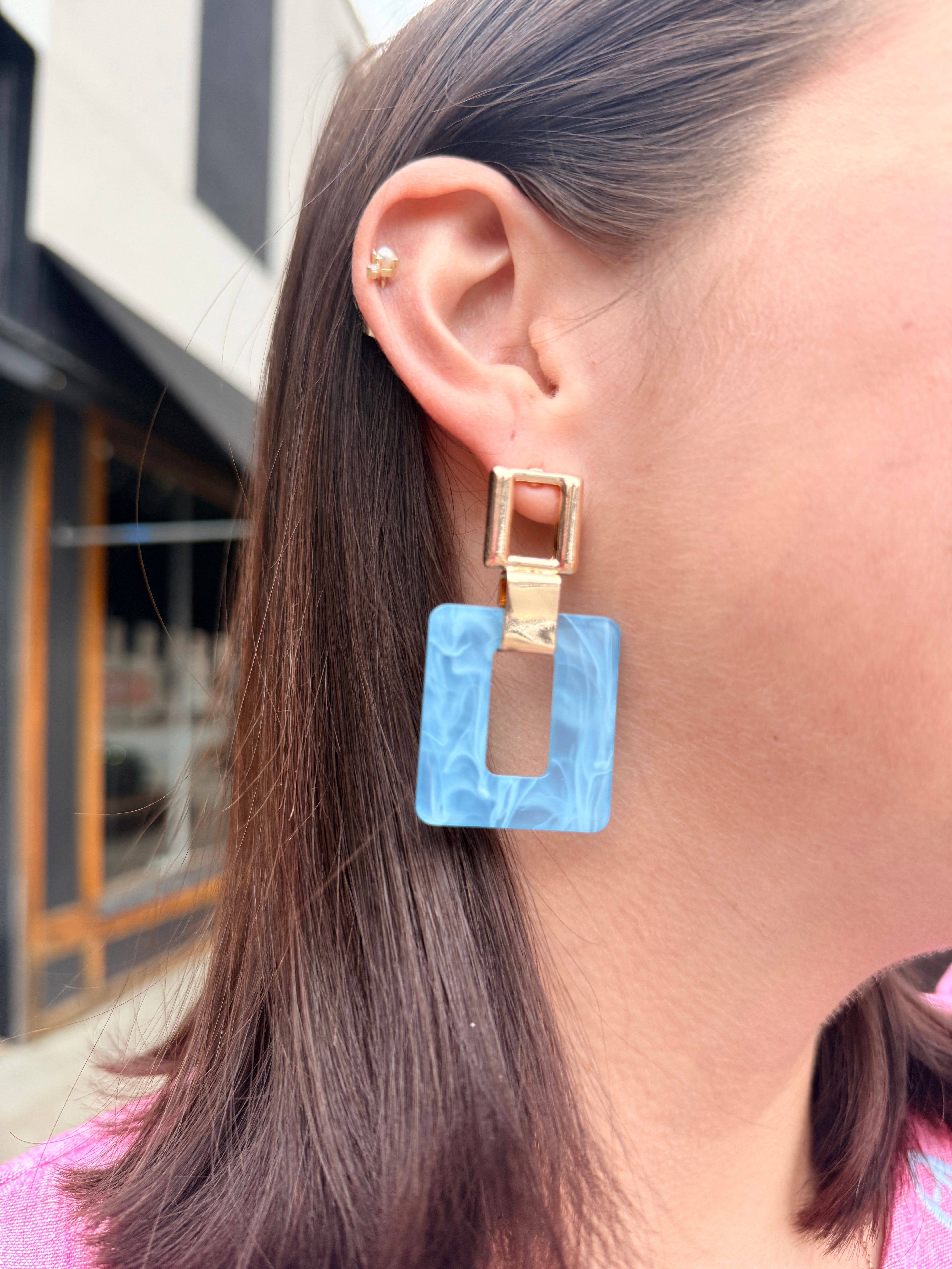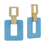 Water Resistant Gold with Matte Light Blue Open Square 2" Earring