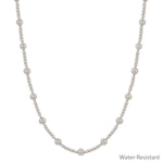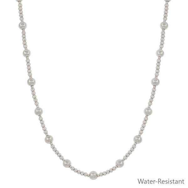 Delicate yet dazzling, the Silver Starlight Layered Bead Necklace features a water-resistant mix of 3MM and 6MM silver beads on a versatile 16"-18" chain. Its subtle shimmer and lightweight feel make it perfect for layering or wearing solo—bringing effortless elegance and lasting shine to your everyday style.