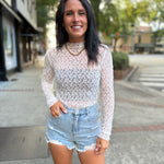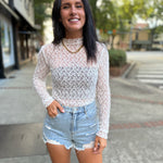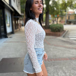 Meet the Whisperlace Illusion Top — a statement in subtle seduction and refined edge. This sheer, high-neck long sleeve top features an intricate diamond lace pattern that dances across the skin with just the right amount of mystery. Its sleek, body-hugging fit flatters your form while layering beautifully under vests, slip dresses, or blazers. Whether you're elevating a casual look or adding a sultry twist to eveningwear, this top is your secret weapon for head-turning sophistication.
