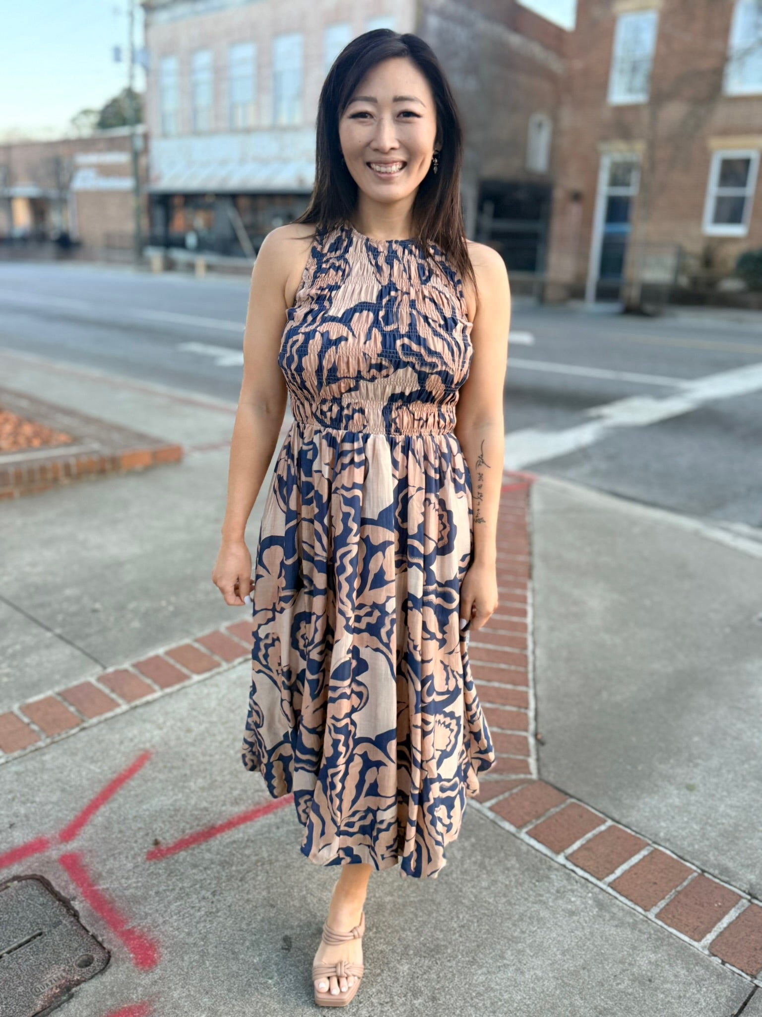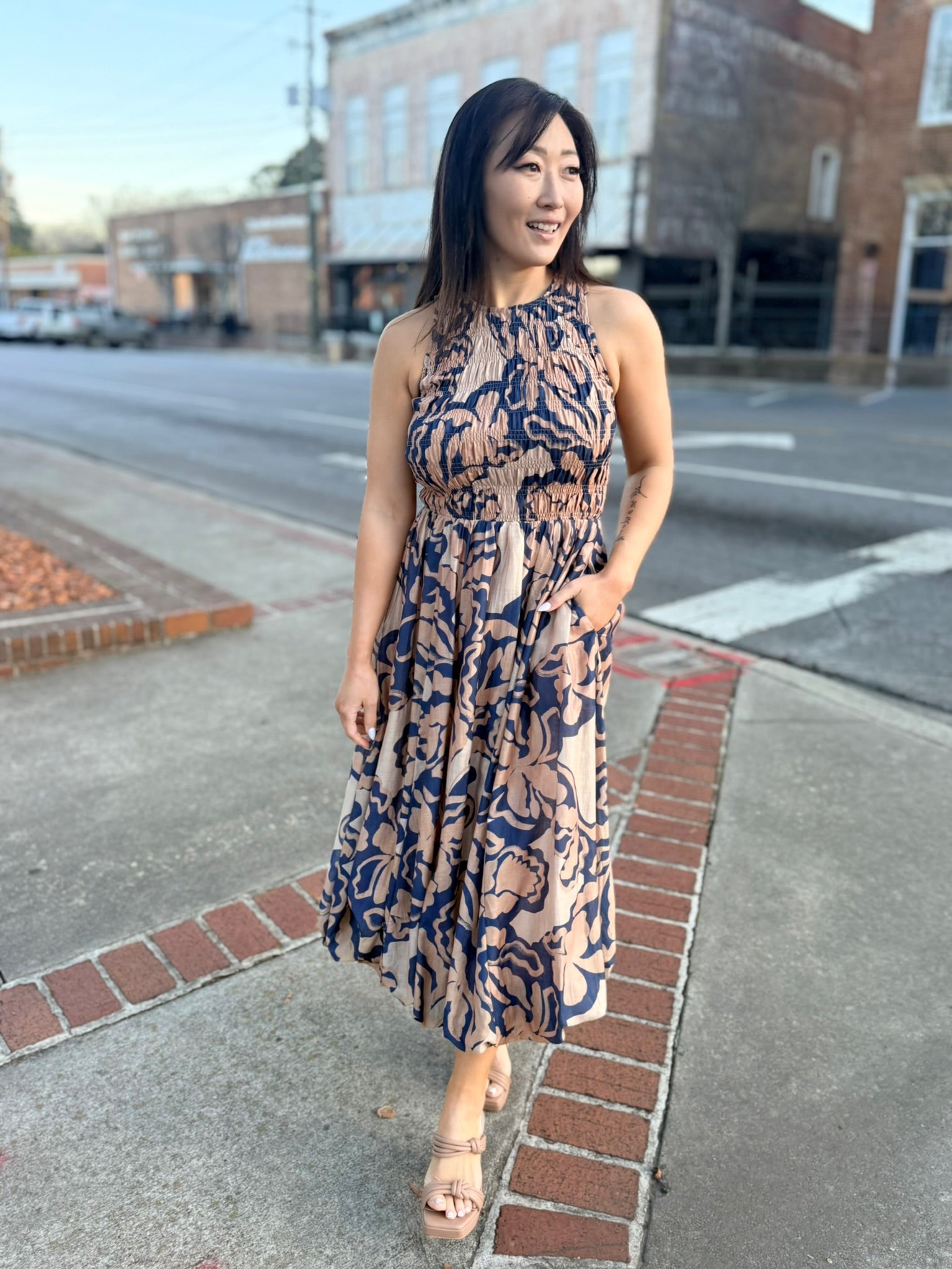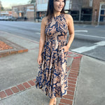 Bold yet effortlessly wearable, the Wild City Midi Dress by Sage the Label brings modern movement and everyday polish together. Designed in a striking navy multi print, this midi silhouette is perfect for transitioning from daytime plans to evening outings with ease. The flattering cut offers comfort without sacrificing style, making it a go-to piece for spring styling. Pair it with sandals for a relaxed look or dress it up with heels for an elevated finish.