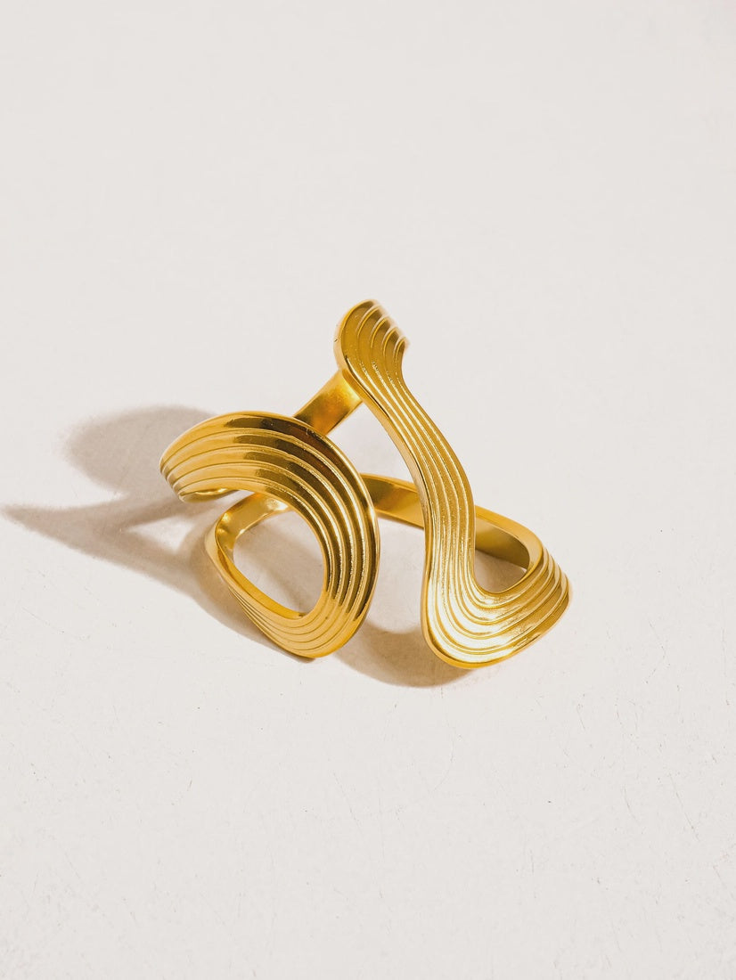 Xena 18K Non-Tarnish Wavy Ring - Yellow Gold