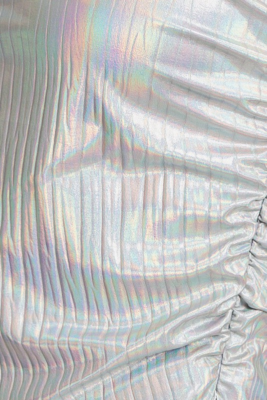 Holographic silver tube top with ruched sides