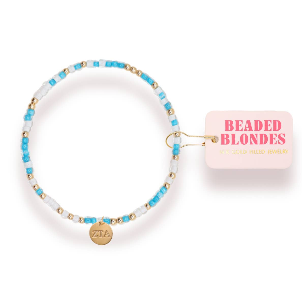 - 2MM gold stackable beaded bracelet with sorority charm.